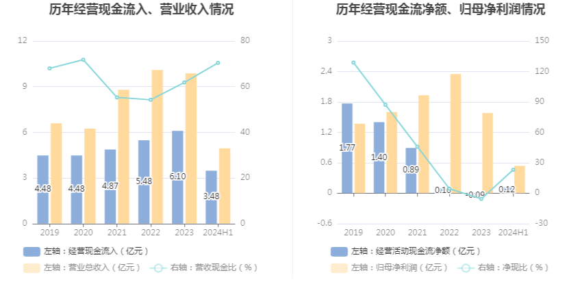2024年上半年,公司筹划行径现金流净额为1247.10万元,同比添加1.07亿元;筹资行径现金流净额-6338.23万元,同比裁减28.63万元;投资行径现金流净额-2.94亿元,上年同期为7790.66万元。