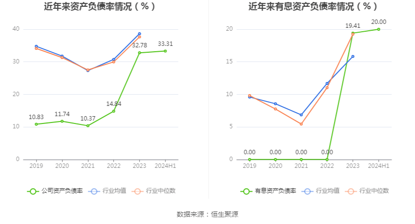 正在偿债材干方面,公司2024年上半年尾资产欠债率为33.31%,比拟上年尾上升0.53个百分点;有息资产欠债率为20.00%,比拟上年尾上升0.59个百分点。